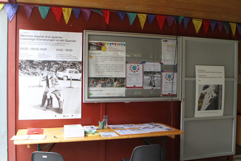 Le recueil de souvenirs par des photos, des documents et des transmissions orales (de savoirs et d’expériences qui risquent de disparaitre) ont permis de créer une grande exposition au Kiosque et dans le Parc de la Vignettaz en mai 2024. Le vernissage officiel a eu lieu à 17 h 00 au Kiosque