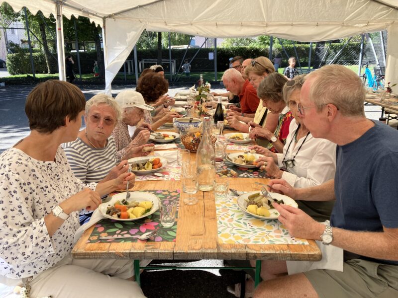 chaque année, une fête d’anniversaire réunissant les habitant-e-s invité-e-s durant les 12 mois a été orgsanisée.